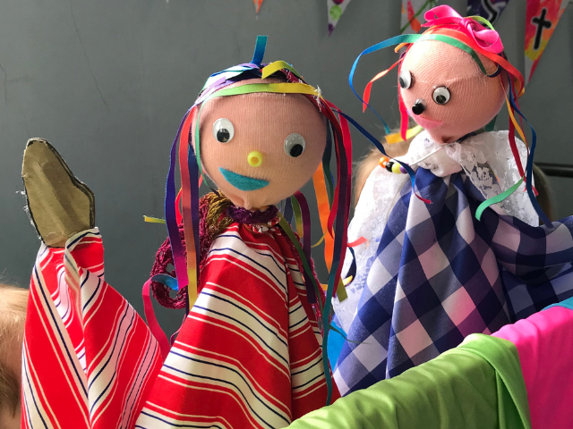 We love sharing and retelling stories, and encouraging open-ended creative play! This week will include making homemade puppets to perform with and bring home, and lots of pretend play and drama. We’ll also host Sandglass Puppet Theater on Thursday, returning for their 3rd year, to present their show PUNSCHI!